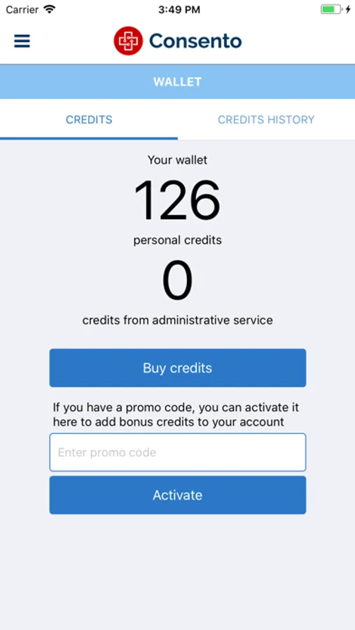 • An e-wallet with credits that you receive as bonuses from doctors or to buy yourself