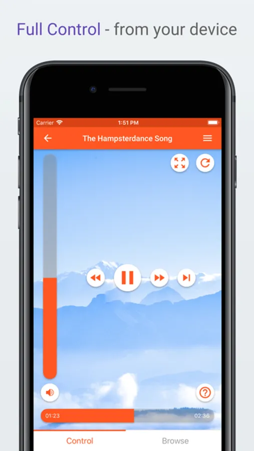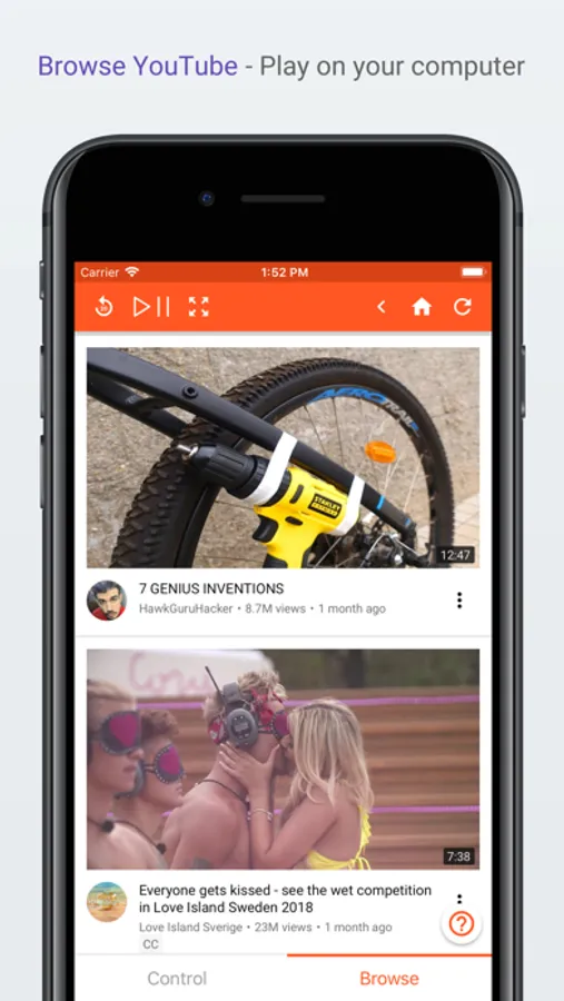 You get all the controls you expect; Play Pause, Seeking, Volume, Fullscreen, plus you can browse on your iDevice.