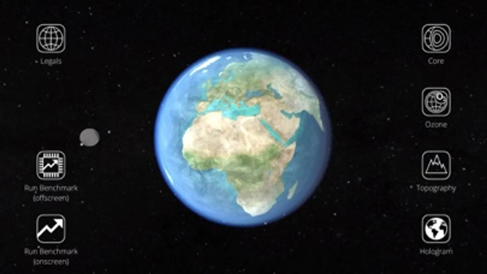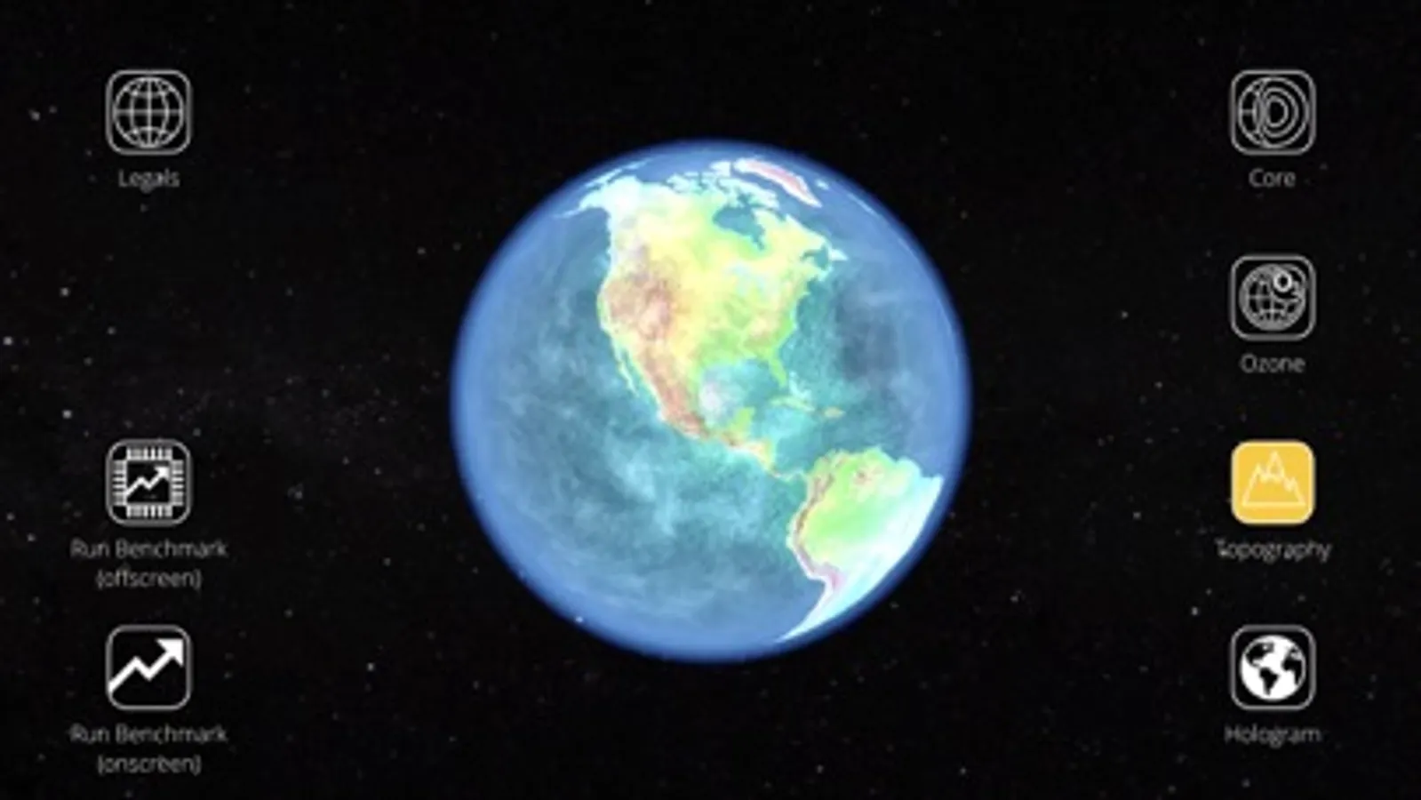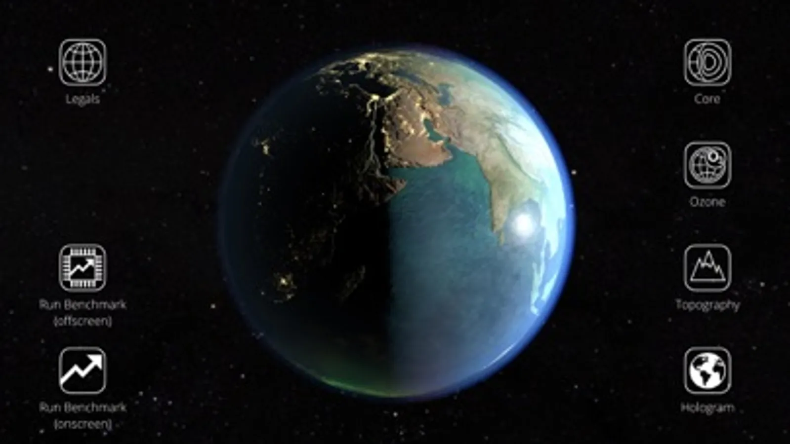Orbital Flight lets you get hands-on with the Earth in this interactive experience. Scale and spin the globe while the day becomes night. See the wonders of the earth with several different visualizations. The Benchmark Modes allow you to measure the performance of the CPU and GPU of your mobile device:
