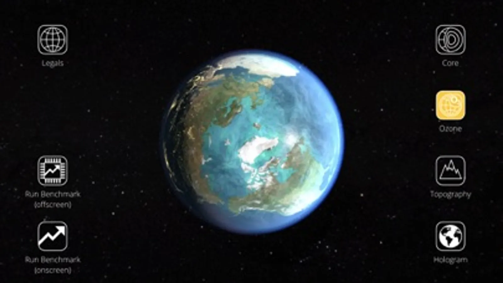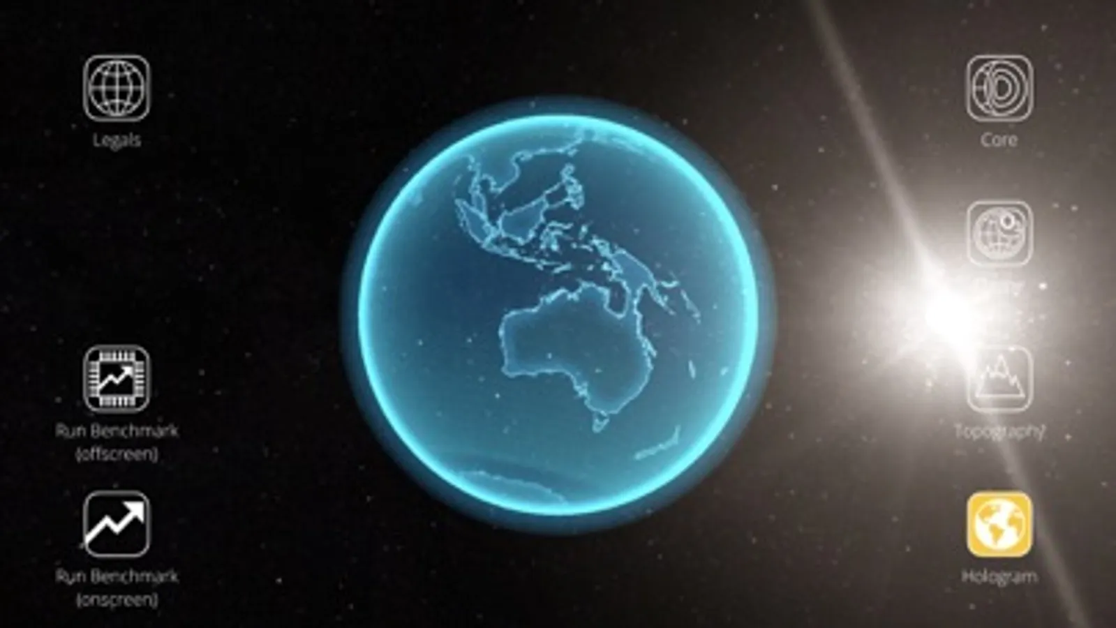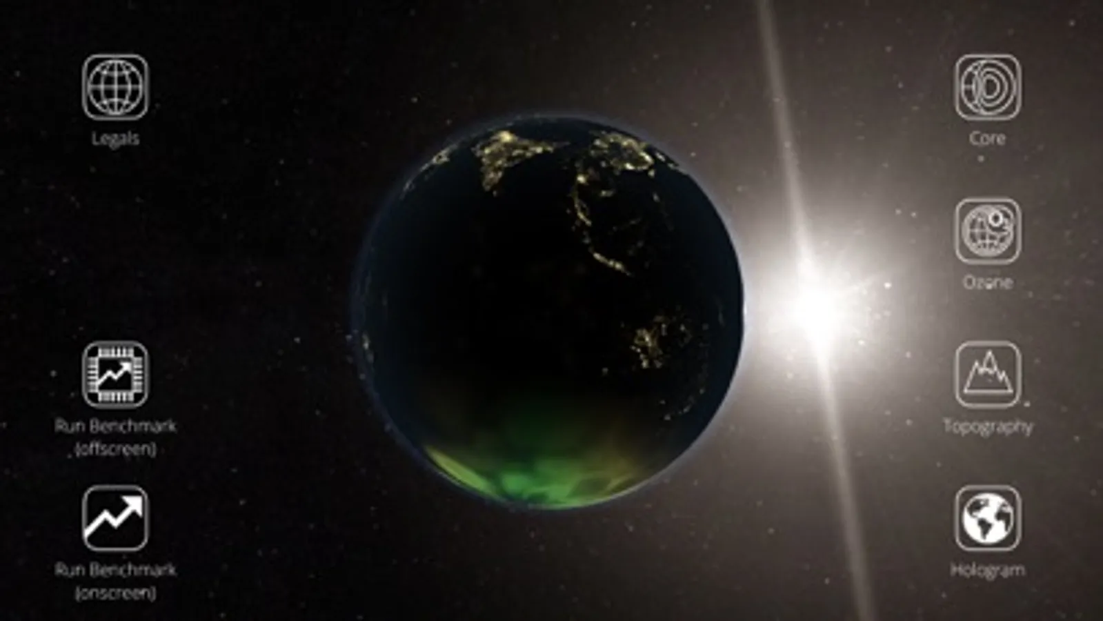 Orbital Flight lets you get hands-on with the Earth in this interactive experience. Scale and spin the globe while the day becomes night. See the wonders of the earth with several different visualizations. The Benchmark Modes allow you to measure the performance of the CPU and GPU of your mobile device: