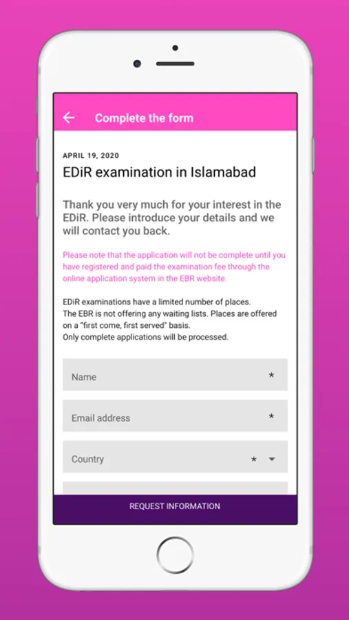 How? By using an app that allows you access to EDiR exams you will be able to practice at any time and anywhere via your mobile. You will also have direct access to a calendar showing you all the current calls around the world and will even be able to register for the exams and be informed about new calls or changes via their notification system.