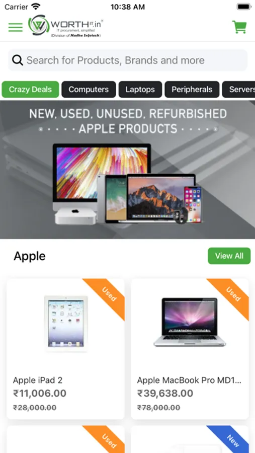 Online shopping app from WorthIT helps you shop refurbished IT Products at your convenience and get them delivered at your doorstep. Using WorthIT free online shopping app, you can easily browse through all the products (laptops, CPUs, monitors etc) that are ready to be shipped after a stringent process of quality check & servicing. WorthIT is a pioneer in refurbished IT products & is one of the divisions of Madhu Infotech India Pvt Ltd and has been serving customers since 1999. All products purchased from WorthIT comes with Warranty & Tax Invoice