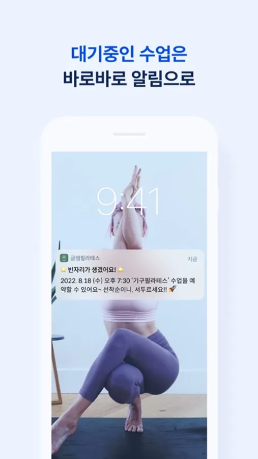언제 어디서나 스마트폰에서 원하는 시간에 수업을 간편하게 예약하는 글램필라테스.