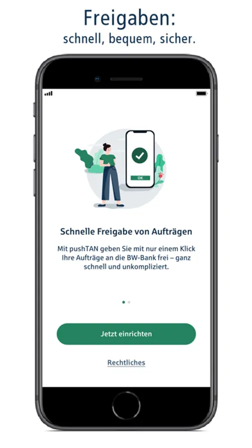 • Für pushTAN brauchen Sie nur zweierlei: Ihr freigeschaltetes BW-Online-Banking und die BW-pushTAN-App auf Ihrem iPhone oder iPad
