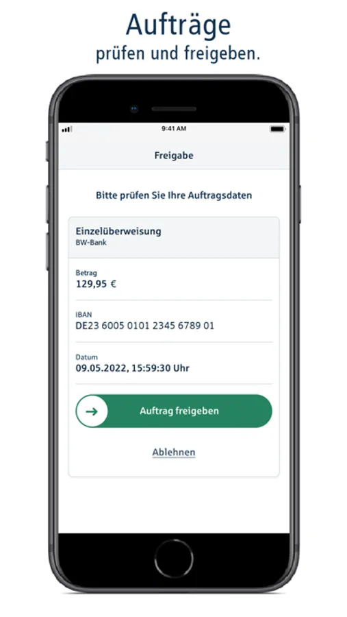 • Für jeden erteilten Zahlungsauftrag ist eine Freigabe in der BW-pushTAN-App möglich