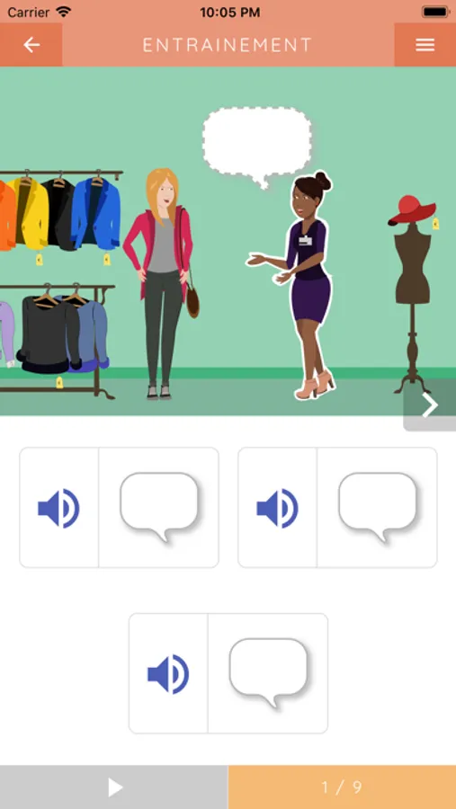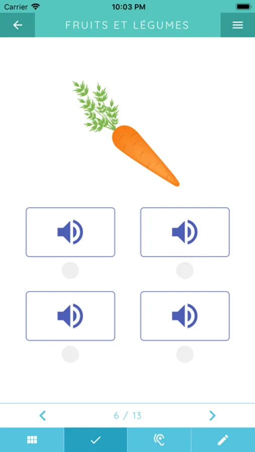 Un dictionnaire visuel permet d'enrichir son vocabulaire et de s'entraîner avec 3 types d'exercice générés aléatoirement :