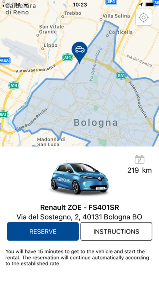 Drive it and park it on blue stalls, on residents places (in Bologna and Casalecchio) or any open area, reachable and allowed by traffic laws.