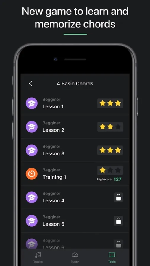 - Full access to games & trainings: these are great way to learn chords by heart and where to put your fingers on the fretboard