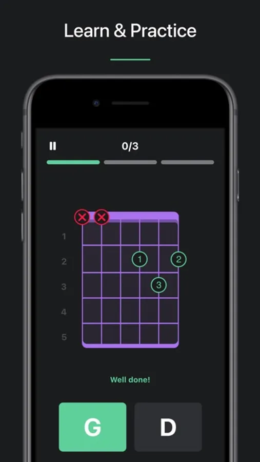 - Exercise your chords anytime with the ultimate Practice mode