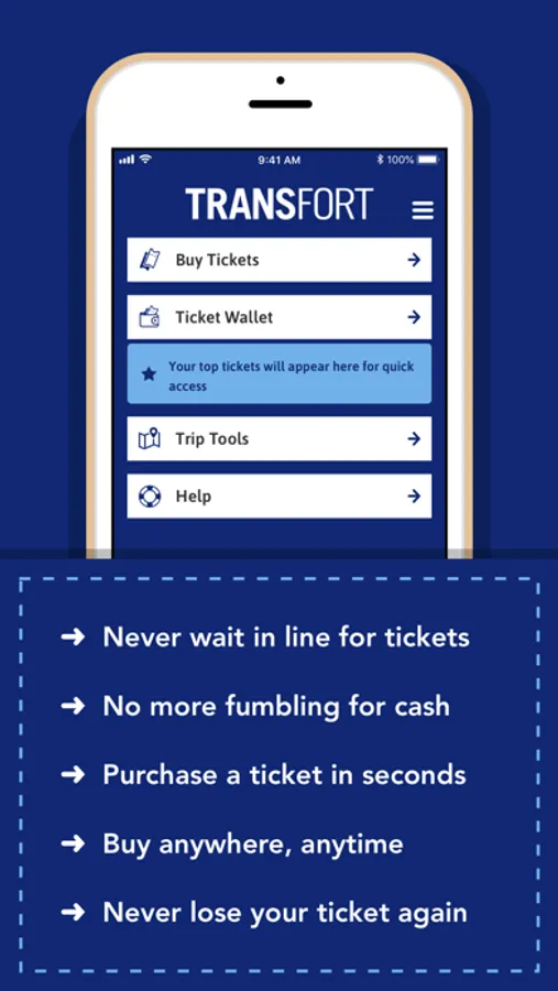 Purchase your Transfort tickets right from your phone, and keep your tickets in the palm of your hand! Single and multi-ride tickets available. View all your tickets on your mobile device and access your account with ease.