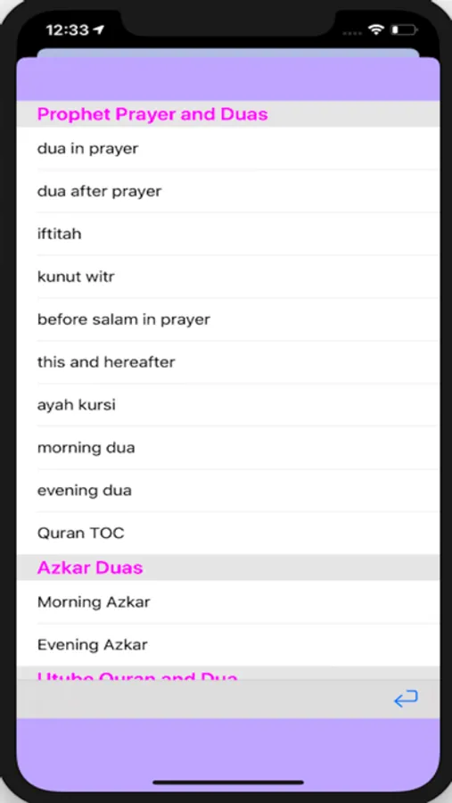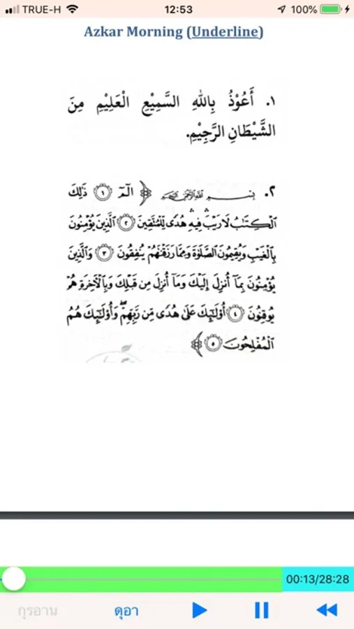 Tap Morning or Evening Azkar to listen to morning azkar and view the azkar text and its meaning