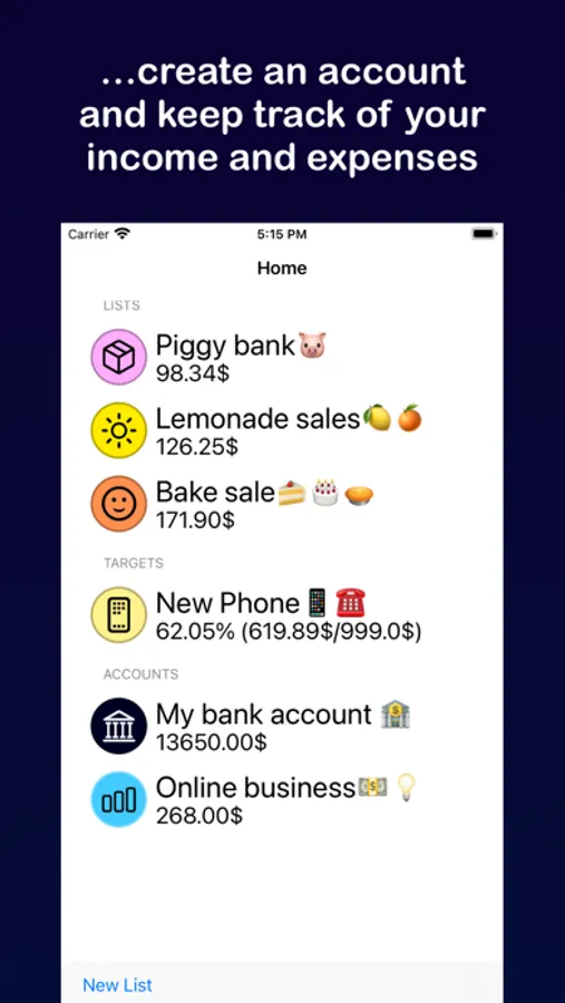 -The Target List: With the Target List you can set a goal and track the financial progress. If you are saving for something or planning a charity event this is a very useful and clear tool.
