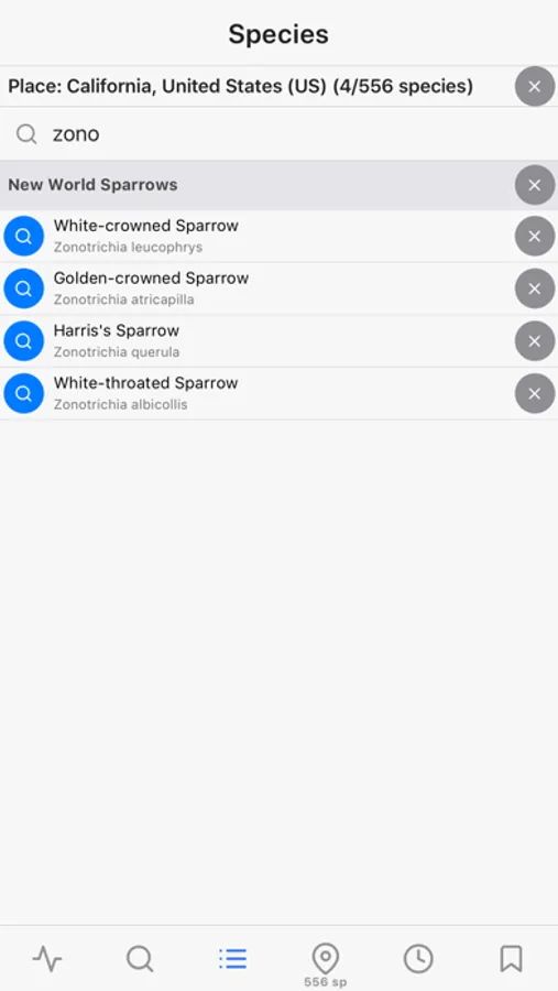 • Places: add your current region or hotspot as a "place" to restrict results to just the birds near you. This rules out far-away species to help you discover your local birds.