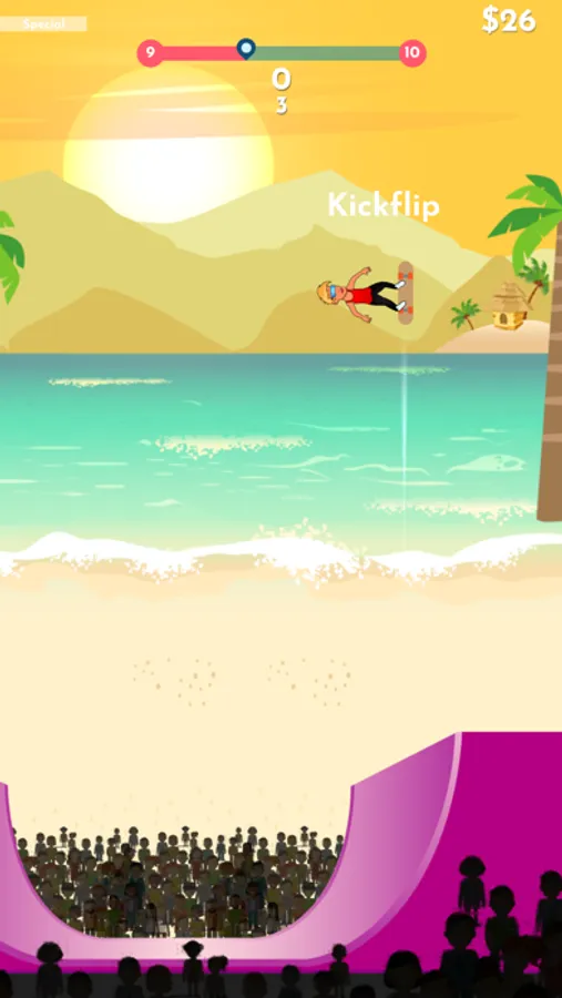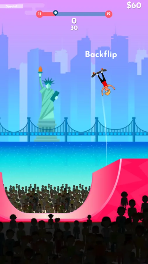 Perform tricks and land them successfully on a vertical half pipe. How high can you score?