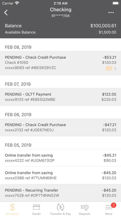 • View recent transactions.