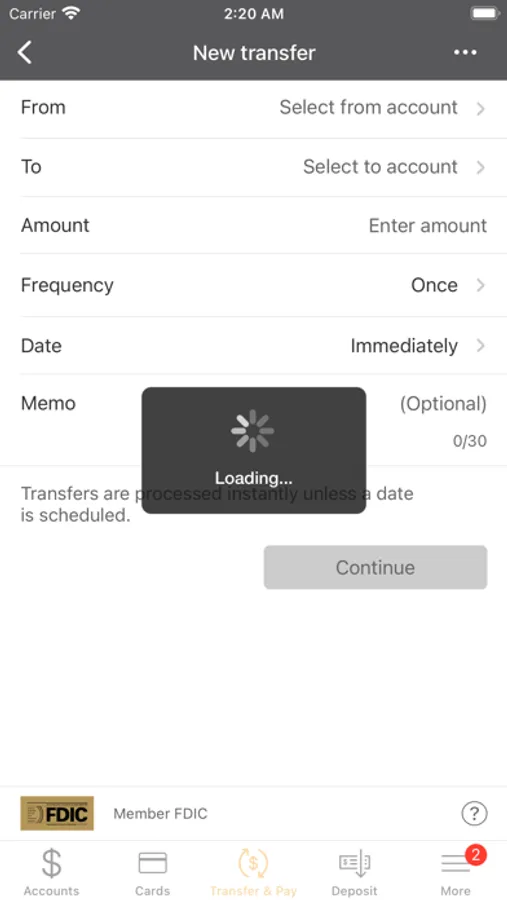 • Transfer money between accounts.