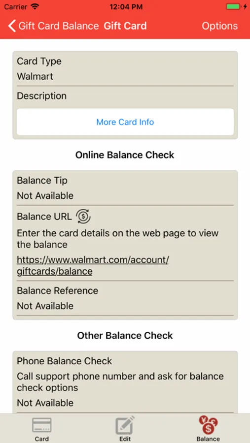 Gift Card Balance (GCB) checks live giftcard balance. The mobile app wallet offers a simple yet accurate way to retrieve real time card balances since 2012. Balance query is performed by connecting directly to the website of card merchant. All giftcard records and photos are 100% stored in your phone. More info: https://gcb.today/app