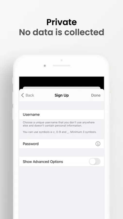 No phone number or email required. Just choose a Secret username to create an account.