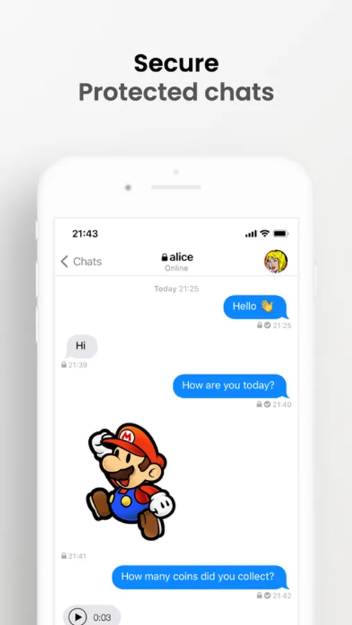 Share audio messages, photos, and videos with your securely.