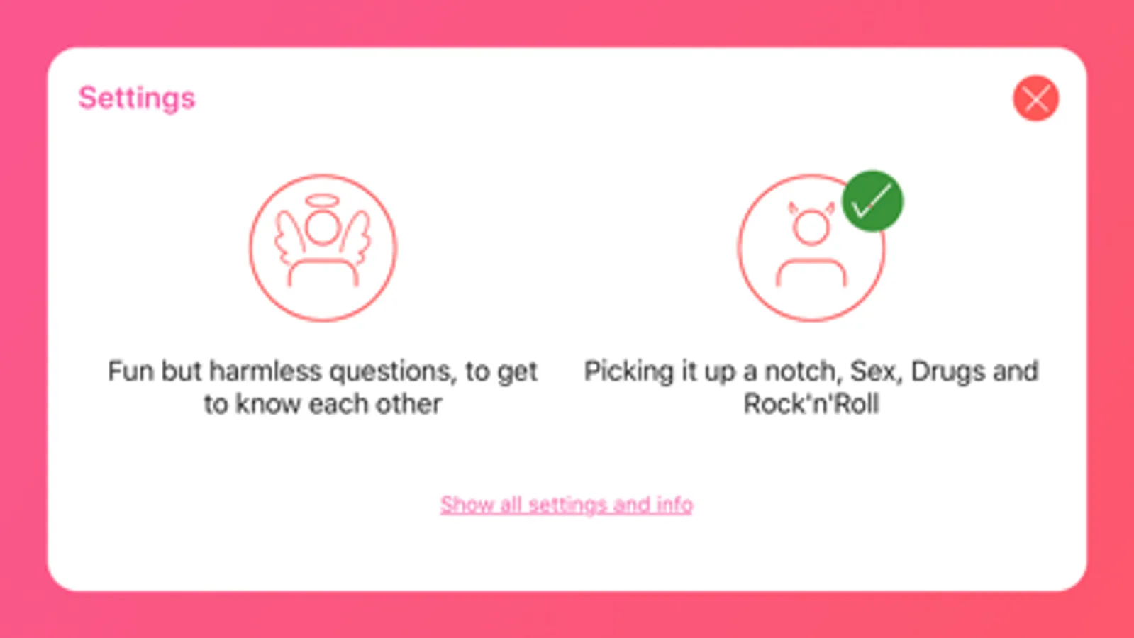 Blame features 100's of fun questions, divided in 2 levels of nastiness. Both of them are accessible in the free version.