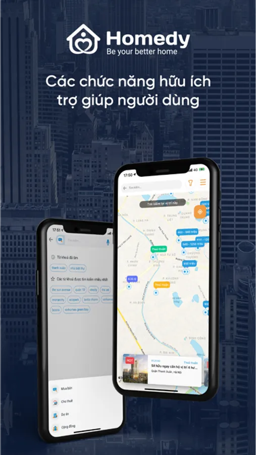 Homedy App là ứng dụng tiện lợi giúp bạn tìm kiếm miễn phí, nhanh chóng và chính xác mọi thông tin về bất động sản, batdongsan, cho thuê - mua bán nhà đất, căn hộ, chung cư, nhà riêng, phòng trọ, biệt thự liền kề, bat dong san chính chủ... tại TP Hồ Chí Minh (TP. HCM), Hà Nội, Đà Nẵng, Đồng Nai, Bình Dương, Long An, Bà Rịa Vũng Tàu... Với Homedy App, người dùng có thể: