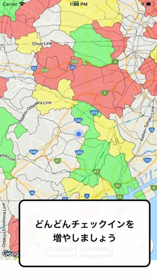 同じ市町村は1日に1回しか、 CHECK IN できないよ。