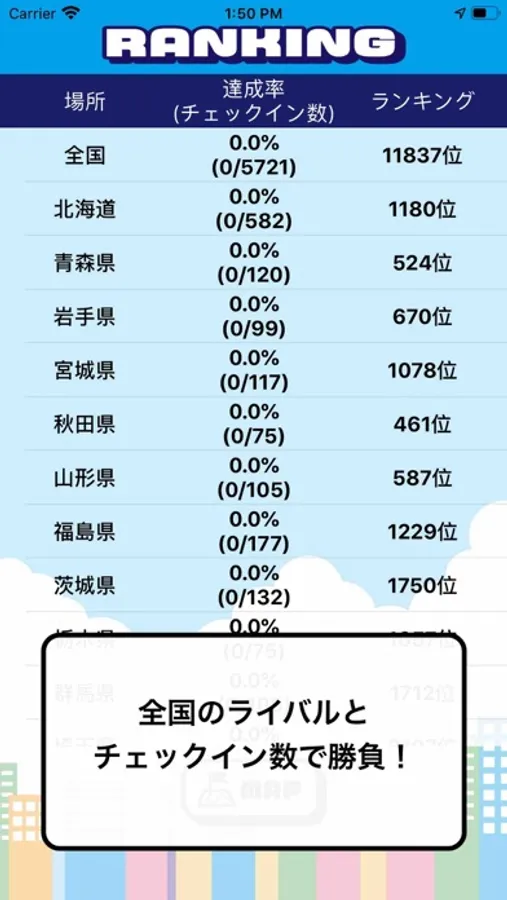 〇全国のライバルと、CHECK IN 状況を競える!