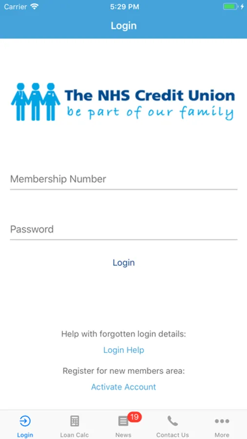 The NHS Credit Union Mobile Banking app, allowing members to access their accounts 24/7
