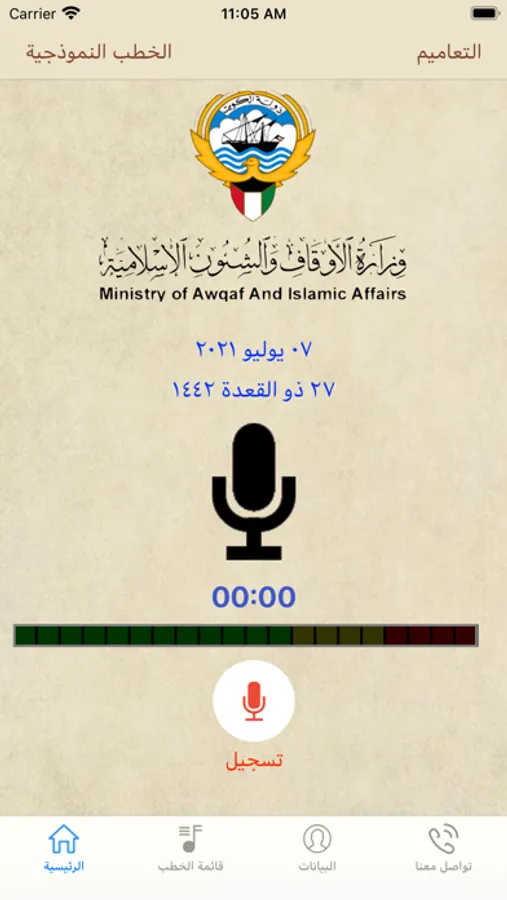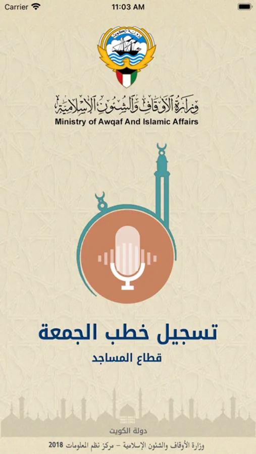 تطبيق تسجيل خطبة الجمعة صادر عن قطاع المساجد في وزارة الأوقاف والشؤون الإسلامية بدولة الكويت.