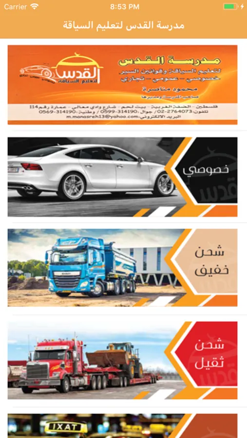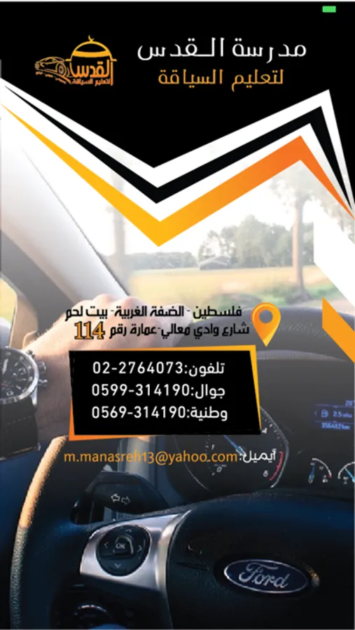 تطبيق خاص لمدرسة القدس لتعليم السياقة في بيت لحم - فلسطين
