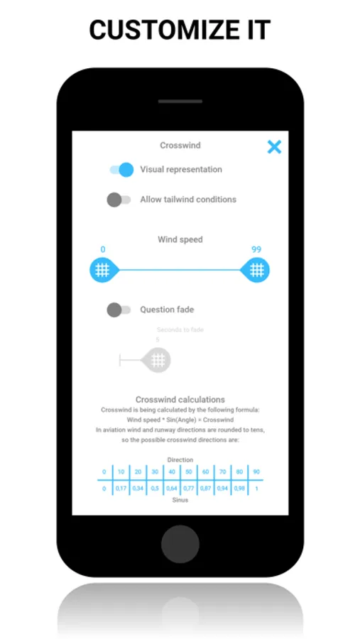 This is the app to directly calculate or practice the mental calculation challenges and flight planing tasks a pilot faces on a daily basis, be prepared for your sim session or school flights. Save money by doing this sessions on the ground, and not in the air or simulator, where you should spend time on refining your skills.