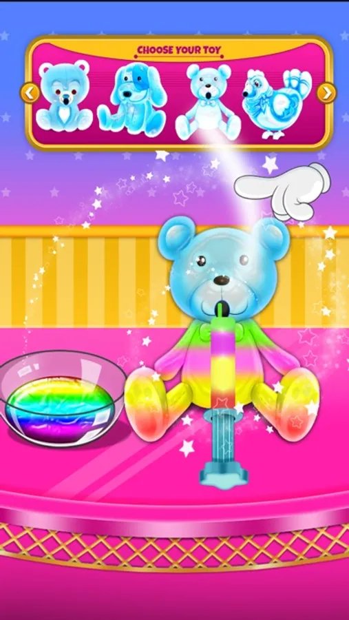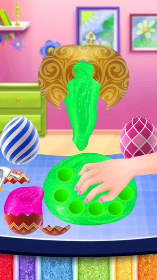 • After making the dough of squishy slime jelly in DIY slime maker game.
