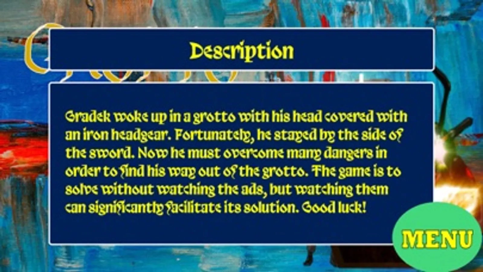 The hero - Gradek - woke up in a grotto with his head covered with an iron headgear. Fortunately, I stayed by the side of the sword. Now he must overcome many dangers in order to find his way out of the grotto. The game is to solve without watching the ads, but watching them can significantly facilitate its solution. Good luck!