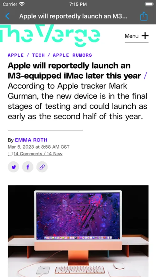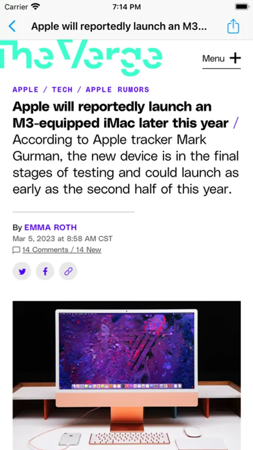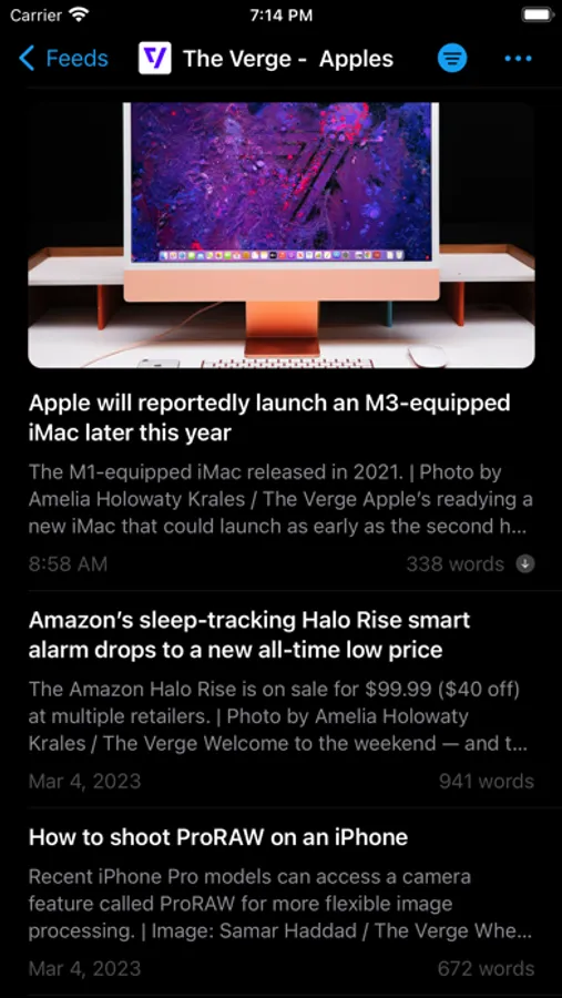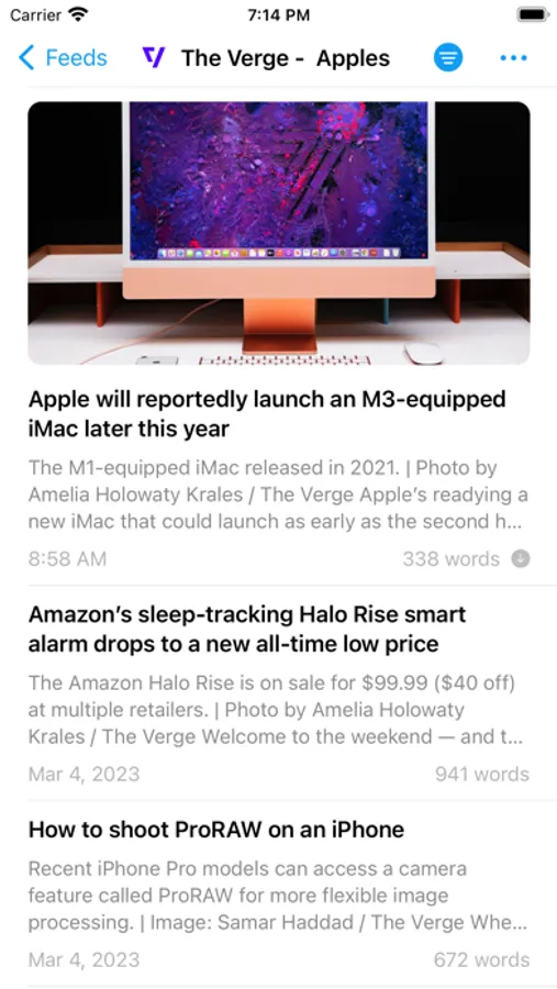 A privacy-focused RSS reader that renders stories in a web browser. Aggregation is all performed on your device and synced through iCloud. Articles are stored locally for offline viewing.