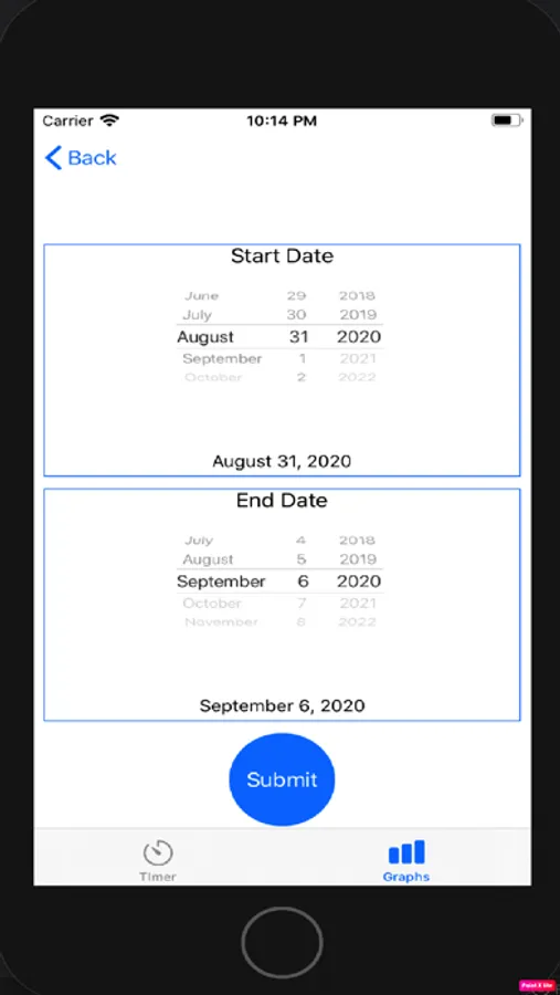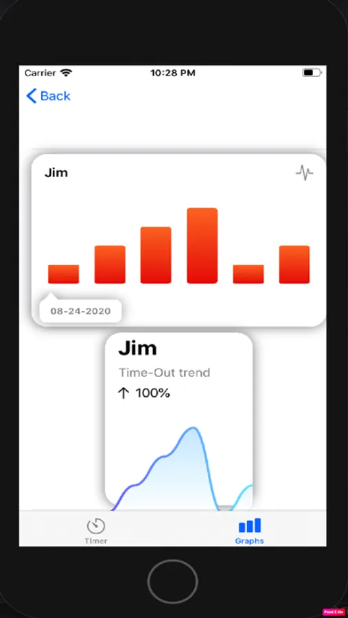 This App can track the time a child spends in timeout. The user can add multiple children to track. The user enters the age of the child and the name. The App then calculates the time a child can spends in timeout. For each year of a child's age, one minute is added to the total timeout. When the timeout start, the user selects the child's name and presses the start button. The timer then counts down. The app alerts the users when the time out is over. Multiple children can be tracked at the same time. The user can stop the timer and reset it for each child. The user can plot each children trend of timeouts and the total timeouts over a period of time. The app will display this information in a line graph for trend an a bar chart for total timeout over a period of time.