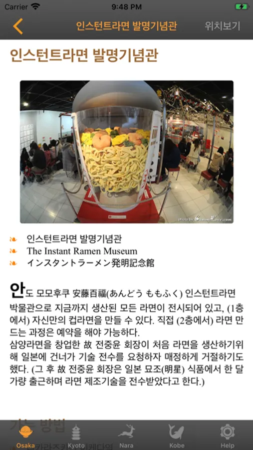 직접 오사카 지역을 여행하며 찍은 사진 중 엄선한 약 500여 장의 사진과 함께 교통 편, 입장료 및 시간 정보 그리고 직접 느낀 생생한 정보를 살펴볼 수 있습니다.