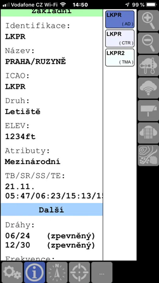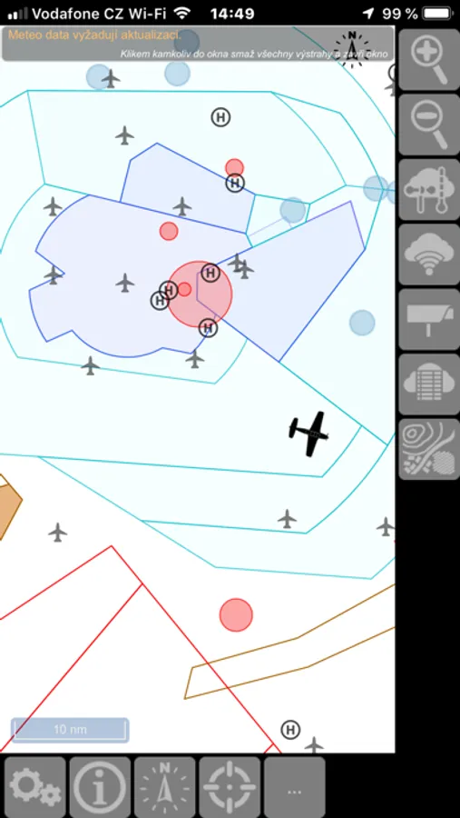 Aplikace i použitá data vzdušného prostoru jsou garantována Řízením letového provozu ČR, s.p..