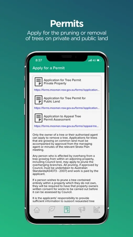 Created by Mosman Council's Tree experts, "Trees Mosman" Is a simplified way to submit a tree permit application, request a street tree planting, report suspicious tree work & determine tree protection zones when planning construction or development works. Loaded with high quality images and detailed descriptions of exempt species, a frequently asked questions page and links for tree related information and issues, "Trees Mosman" is the easy & efficient way to manage your trees.