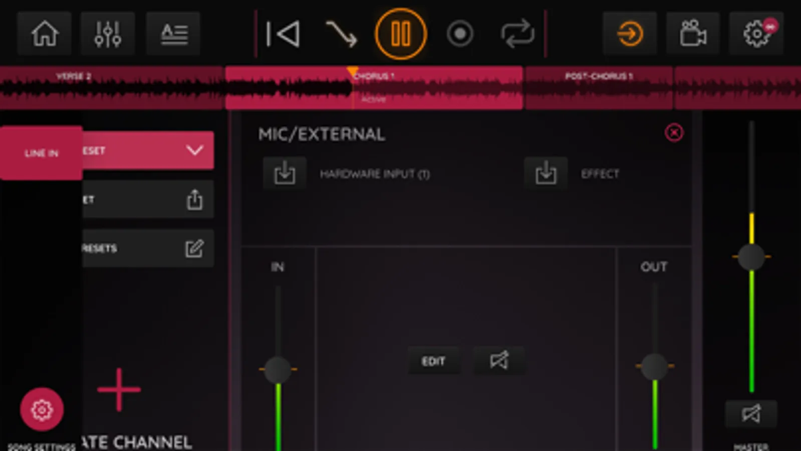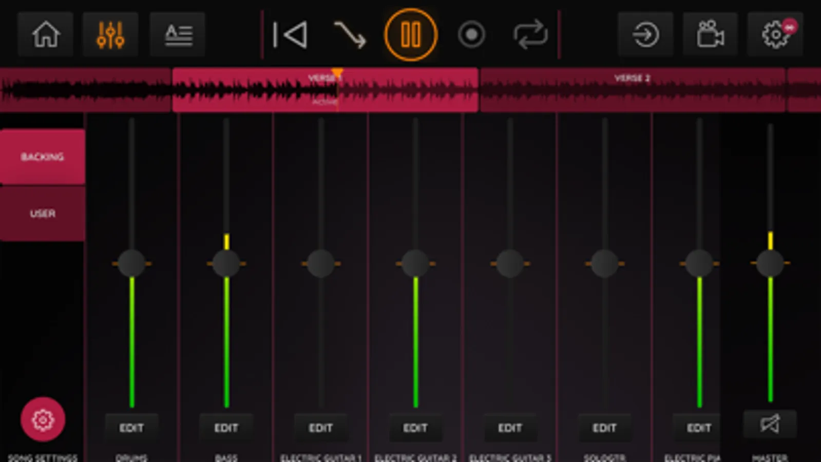 • Record your microphone, keyboard og guitar output on user tracks.