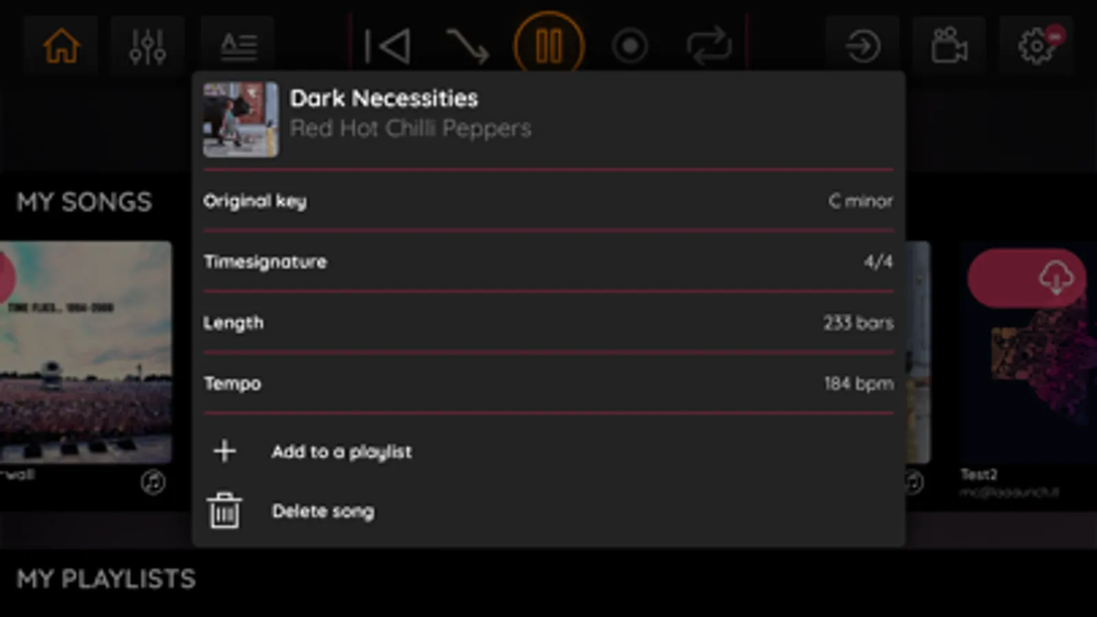• Transpose the song to a different key.