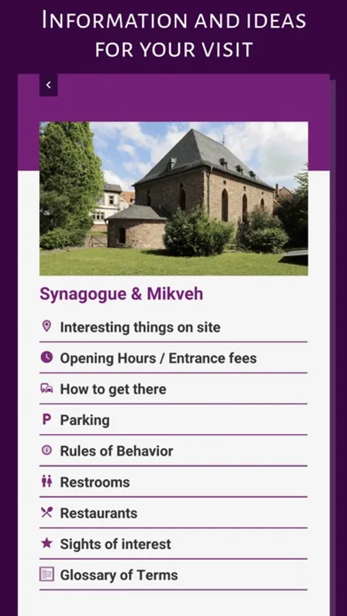 With this app, you can discover the monuments and cemeteries inscribed as World Heritage sites in a completely new way. Follow fascinating stories while learning about ShUM, the architecture of synagogues, women’s shuln and ritual baths - and why Jewish cemeteries are “places of eternity.”