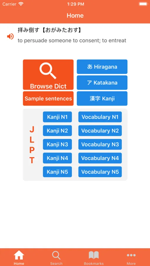 • Learn Japanese with JLPT from level 1 to level 5 in both Kanji and vocabulary list