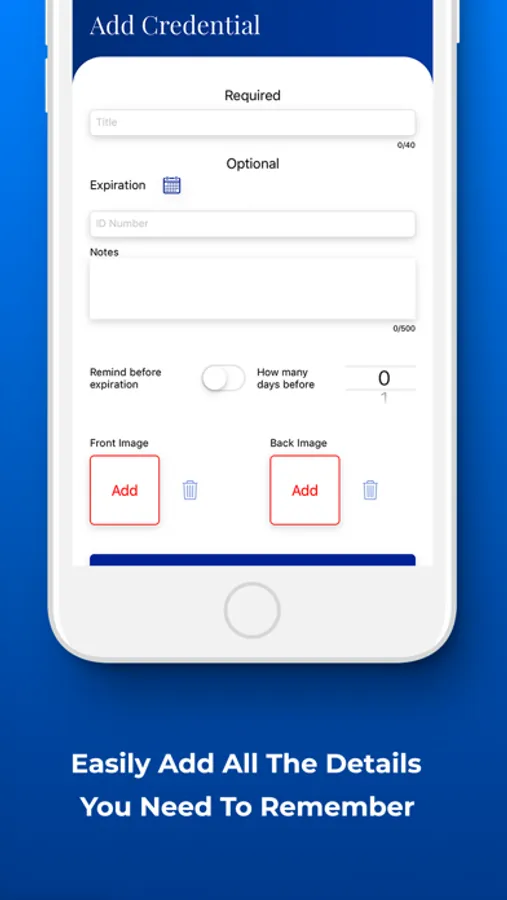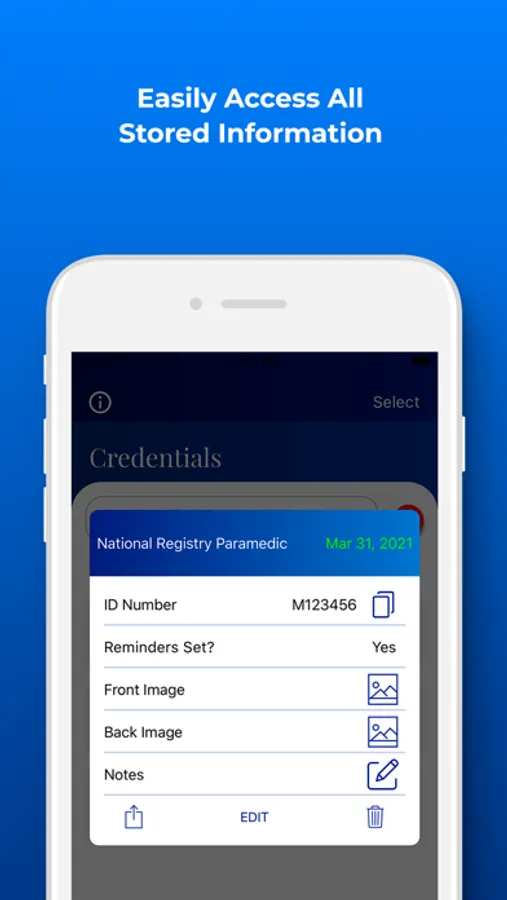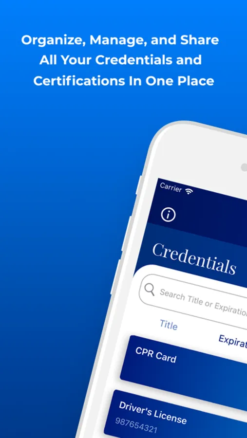 Consolidate, organize, manage, and share all of your credentials, or anything that expires! Simply create an account, enter the credential information, and you're all set! YOU choose when or if you get reminded.