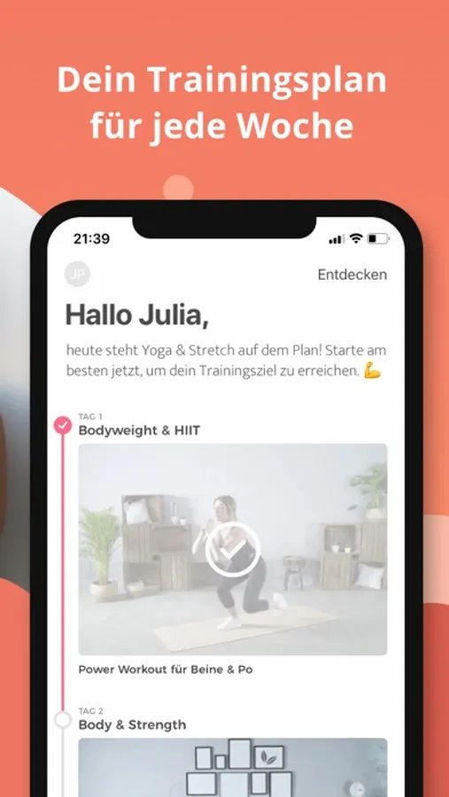 Gesund abnehmen und fit werden mit Ganzkörper Workouts, Fasten Tracker und gesunden Rezepten. Natürlich kannst du die App eine ganze Woche gratis testen.
