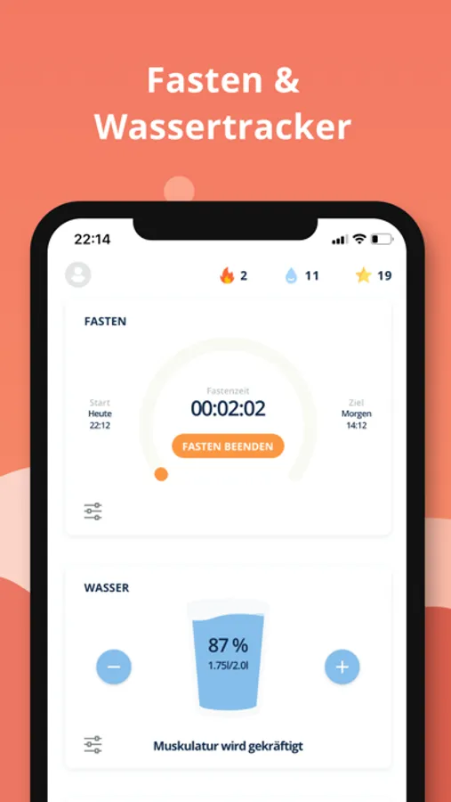 • Fasten Tracker mit Fasten Plänen (z.B. 16:8 oder 14:10)