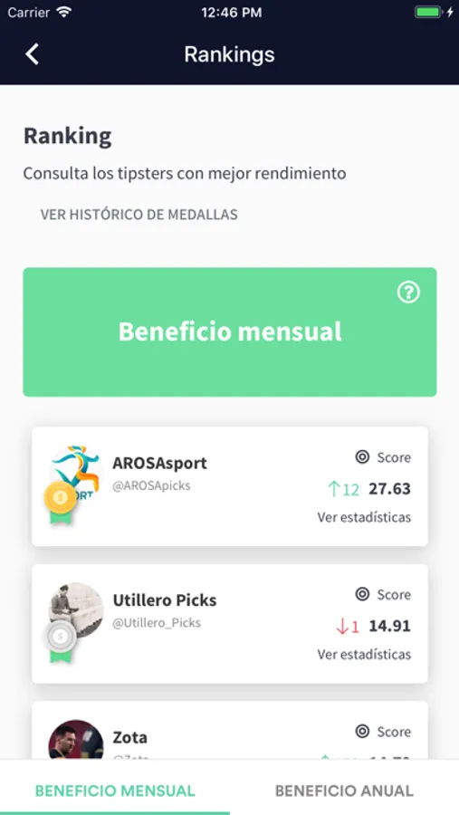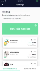 - Analiza las estadísticas de los tipsters free y/o premium y decide a cuáles seguir.