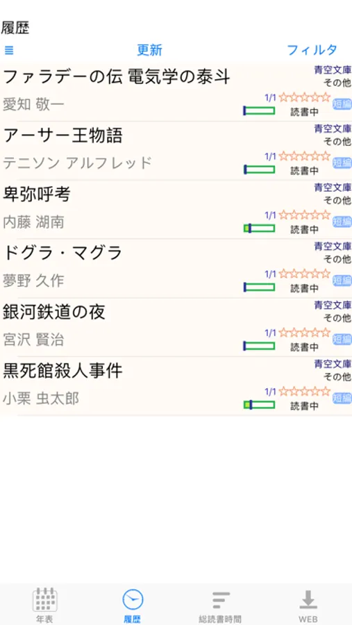 ・読書年表で、あの頃に読んでいた作品のチェックを手軽に行えます。