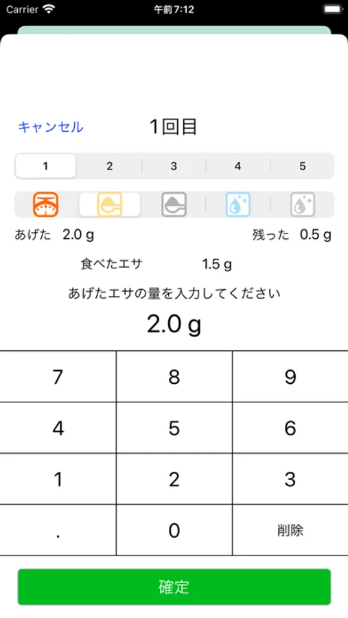 0.1グラム単位での体重・エサの量・水の量の入力がかんたんにできます。
