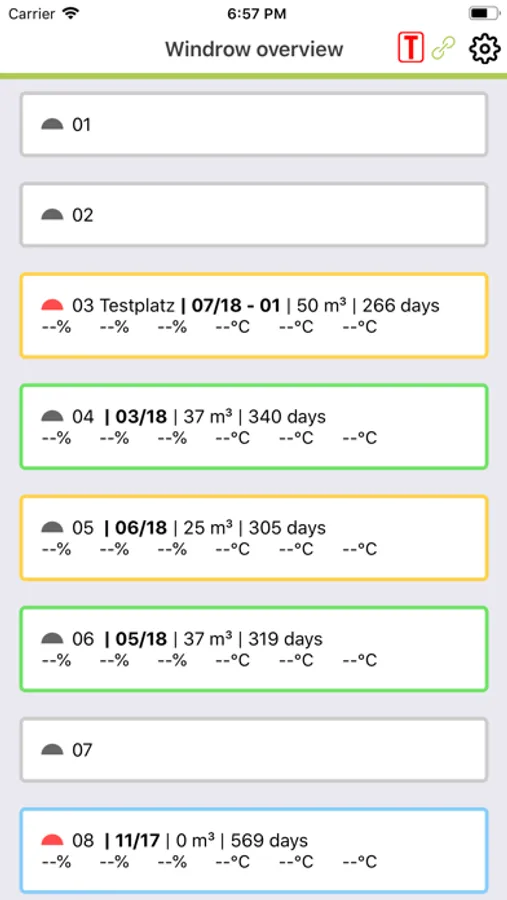 - Eingabe von Temperatur, CO2 (O2 und CH4 optional) an bis zu drei Orten (unten, mittig, oben)
