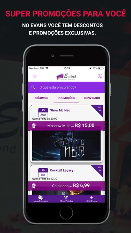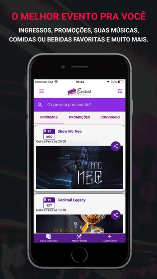 Ingressos, comidas ou bebidas favoritas, promoções, tudo em suas mãos e muito mais.